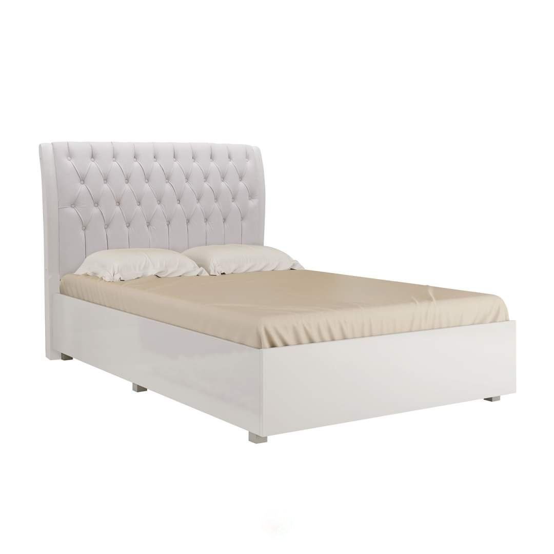 Cama Charlott Box Forte Branco com cabeceira estilo divã. Acabamento UV, sistema antiriscos e estrutura em MDP/MDF da Gelius Móveis.
