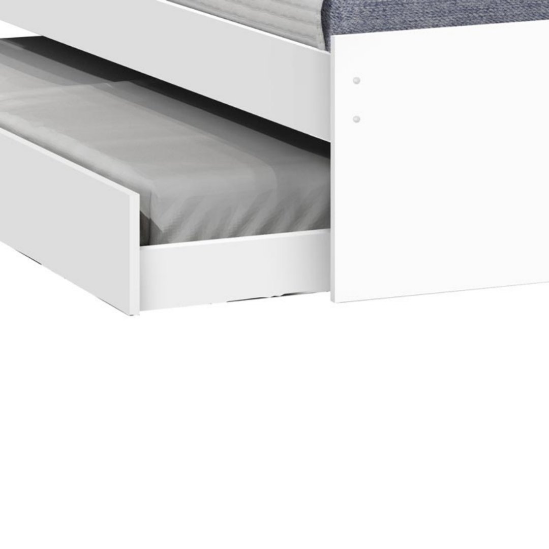 Cama Dupla Prisma da J&A Móveis: design clean e elegante para o seu quarto. Estrutura robusta, ideal para colchões de solteiro, unindo estilo e conforto.