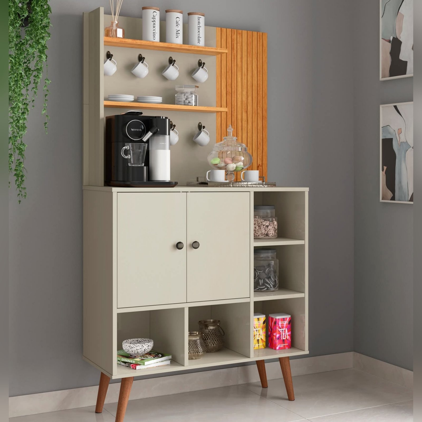 Ideal para os amantes de café, o cantinho Aurora proporciona um espaço acolhedor e funcional para preparar e servir as suas bebidas favoritas. Um móvel compacto, elegante e perfeito para valorizar qualquer ambiente da casa.
