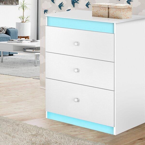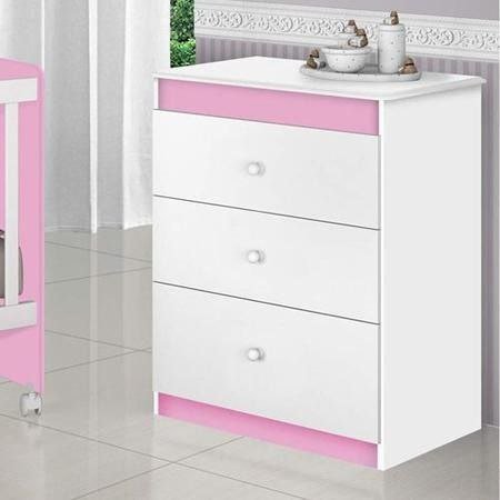 Cômoda Catatau com 3 gavetas espaçosas, estrutura resistente e design compacto. Opções de montagem em branco, branco-rosa ou branco-azul. Ideal para organizar o quarto do bebé.