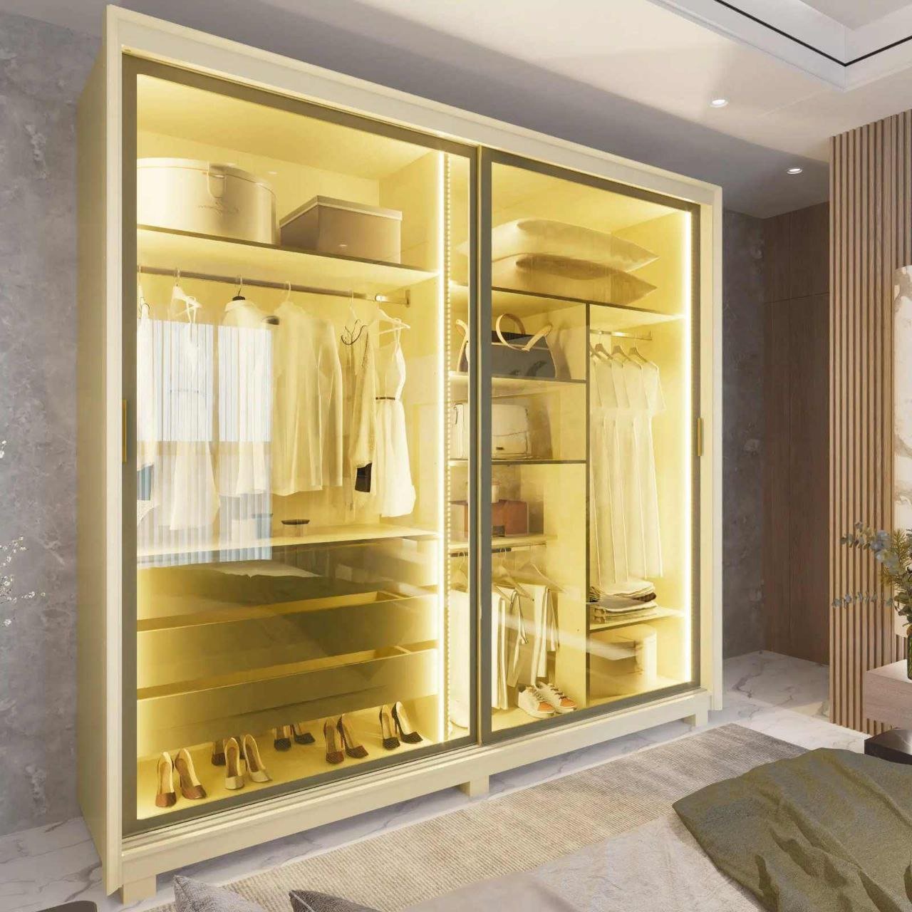 Descubra o Guarda-Fato casal Platinum – 02 portas em vidro com LED. Design moderno, organização prática e sofisticação no seu quarto.