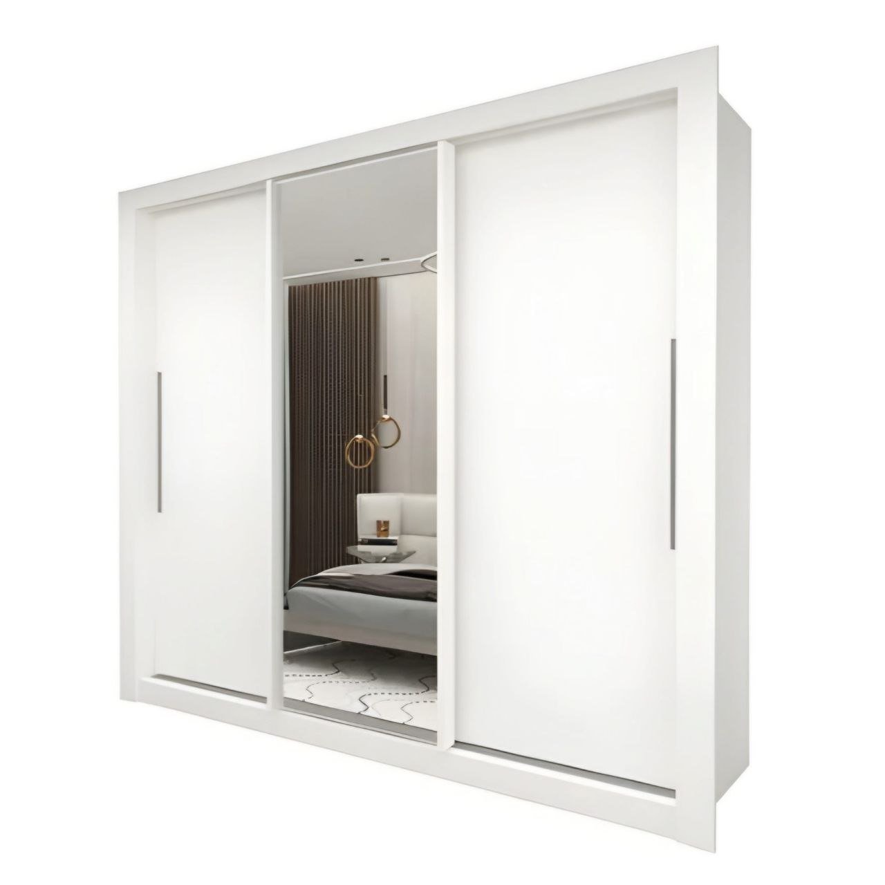 O Guarda-Fato casal Milão 03 portas com espelho é a solução perfeita para quem procura espaço, organização e sofisticação no quarto. Com 3 portas modernas, sendo uma com espelho integrado, este móvel garante arrumação prática e um design elegante que valoriza qualquer ambiente.
