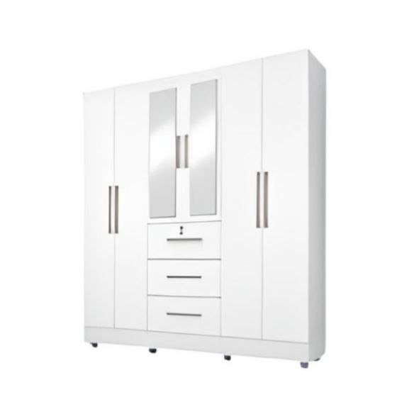 O Guarda-fato Tokio 6 Portas é ideal para quem busca organização e elegância. Com 6 portas, 3 gavetas externas (uma com chave), 3 cabideiros e 2 espelhos integrados, oferece amplo espaço e praticidade. O acabamento em pintura UV com verniz brilhante garante durabilidade e fácil limpeza, enquanto o design moderno em branco combina com qualquer decoração.