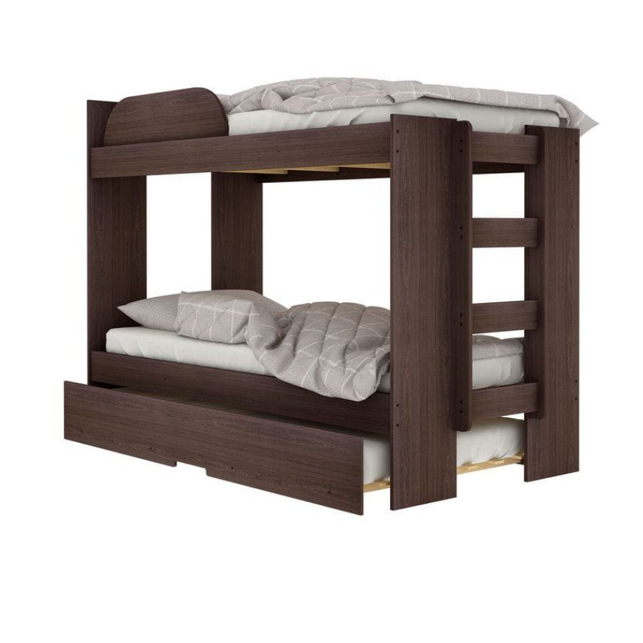 Triliche Peace 3 lugares com estrutura sólida e acabamento em cor café. Ideal para quartos partilhados, aproveita o espaço vertical com estilo e conforto.